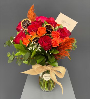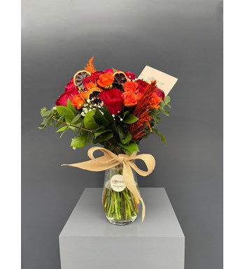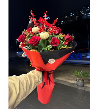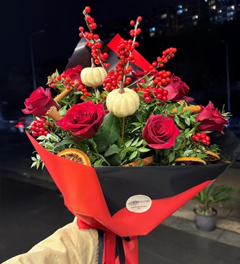 Stok ve mevsimsellik durumuna göre küçük çeşit/tomurcuk farklılıkları olabilir; ancak renk paleti, ölçü ve genel kompozisyon belirtilen estetik çizgiye sadık kalır.