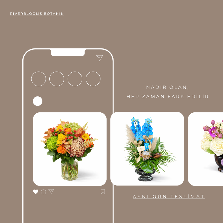 Kısacası, “kalpten gelen” bir jesti estetik bir tasarımla buluşturmak istiyorsanız, River Blooms yanınızda. Bugün birini mutlu etmek için şimdi seçin, çiçek gönder butonuna dokunun; İstanbul’da aynı gün ulaştıralım.