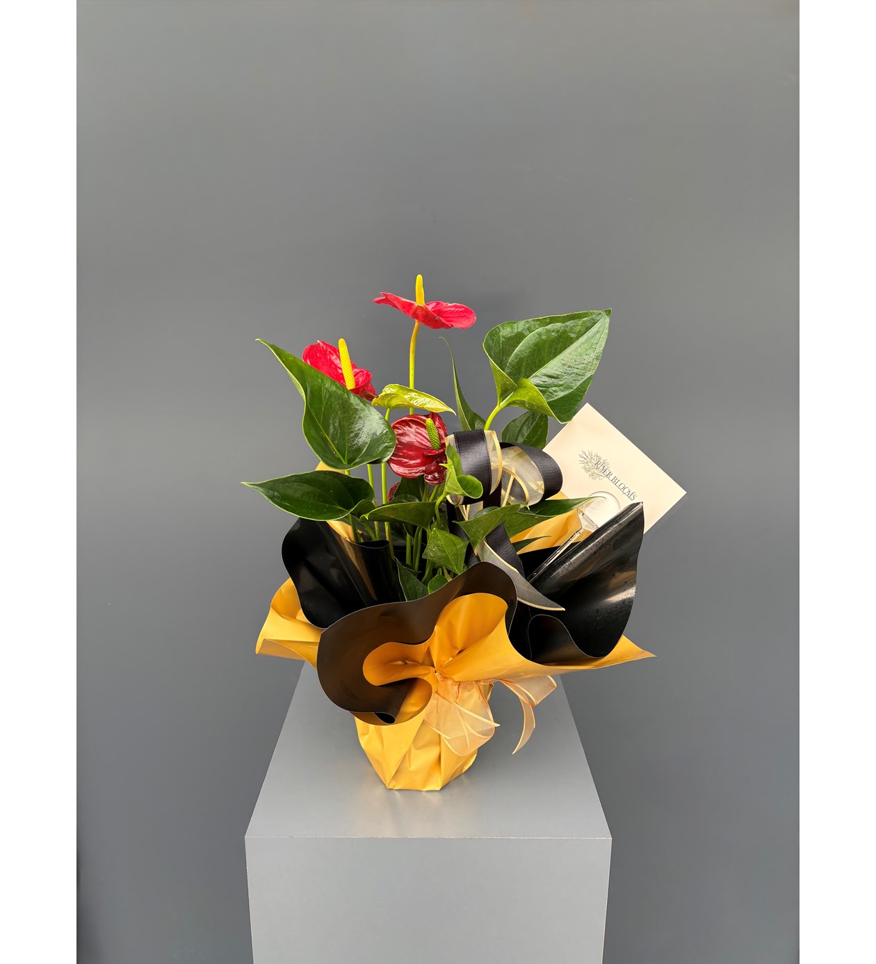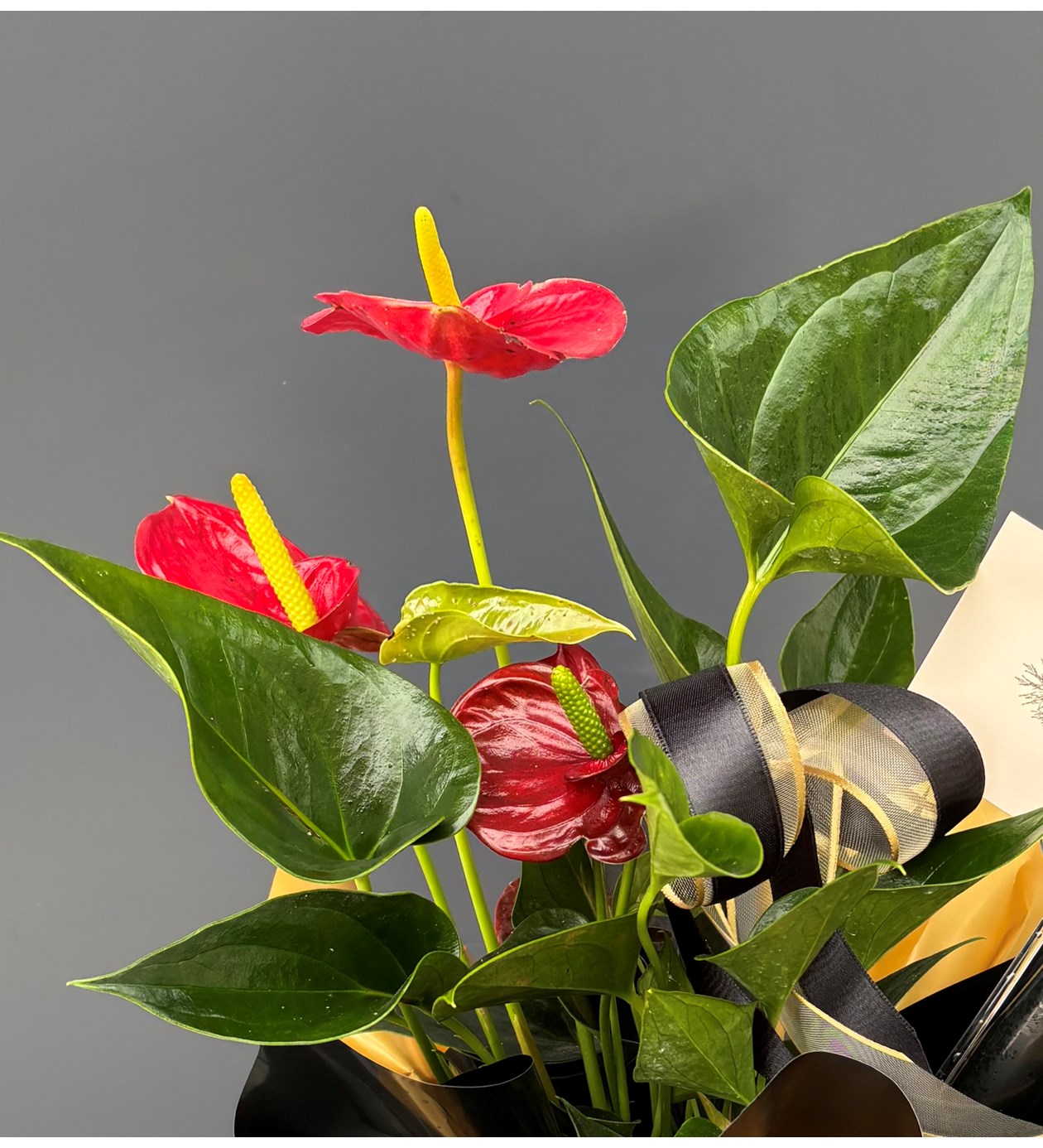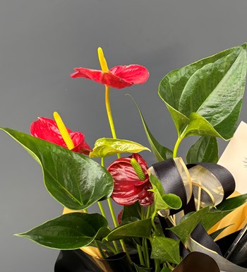 Gold siyah ambalaja hazırlanan Antorium bitkisi