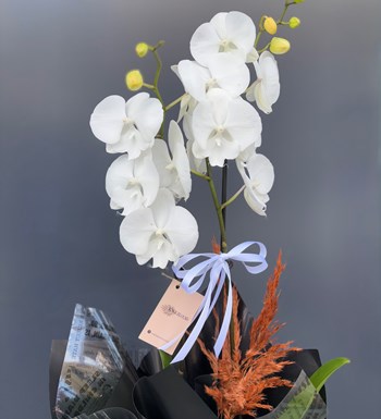 Orkide ürünümüzün içerisinde özel seçilmiş çift dallı Beyaz Orkide, designers ekibimizin sizlere en özel günlerinize; anlamlı bir hediye armağan etmeniz için özenle hazırlanır.
