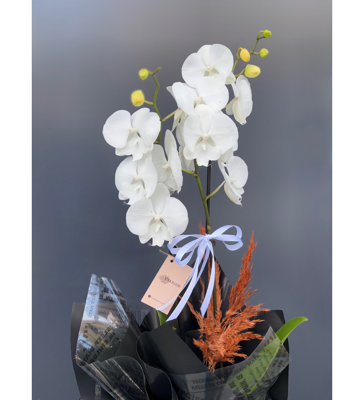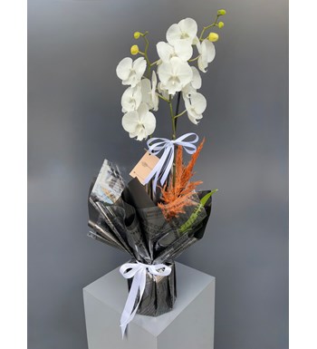 Çift dallı Orkide, designers ekibimizin özenle süslediği ve içerisinde Beyaz Orkide'den oluşan bir üründür.