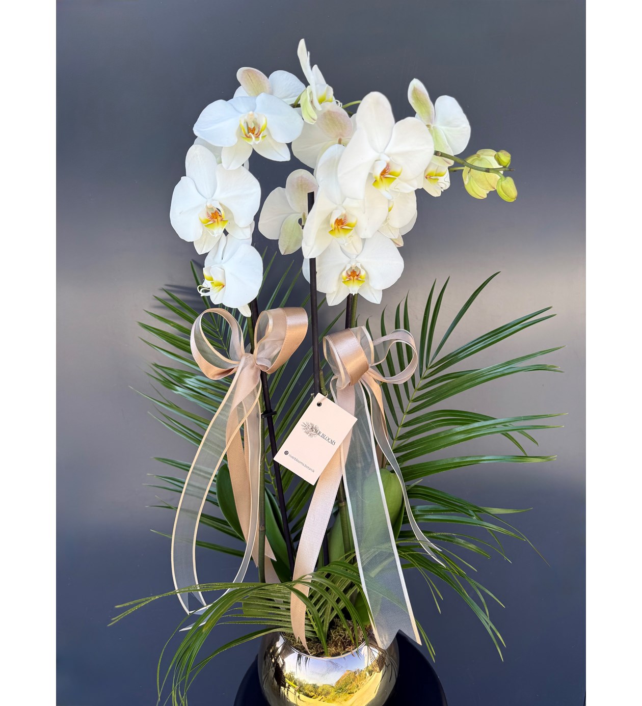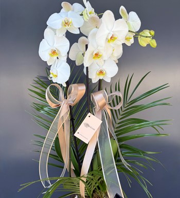 Çift dallı Orkide, designers ekibimizin özenle süslediği ve içerisinde Beyaz Orkide'den oluşan bir üründür.