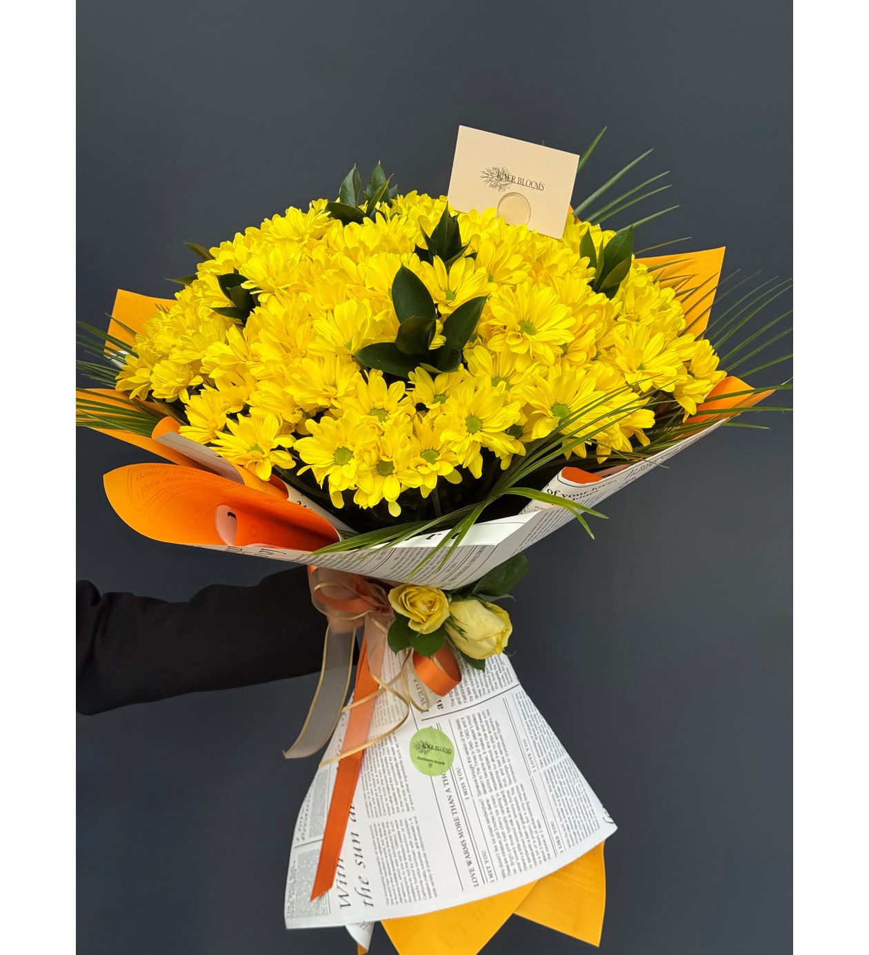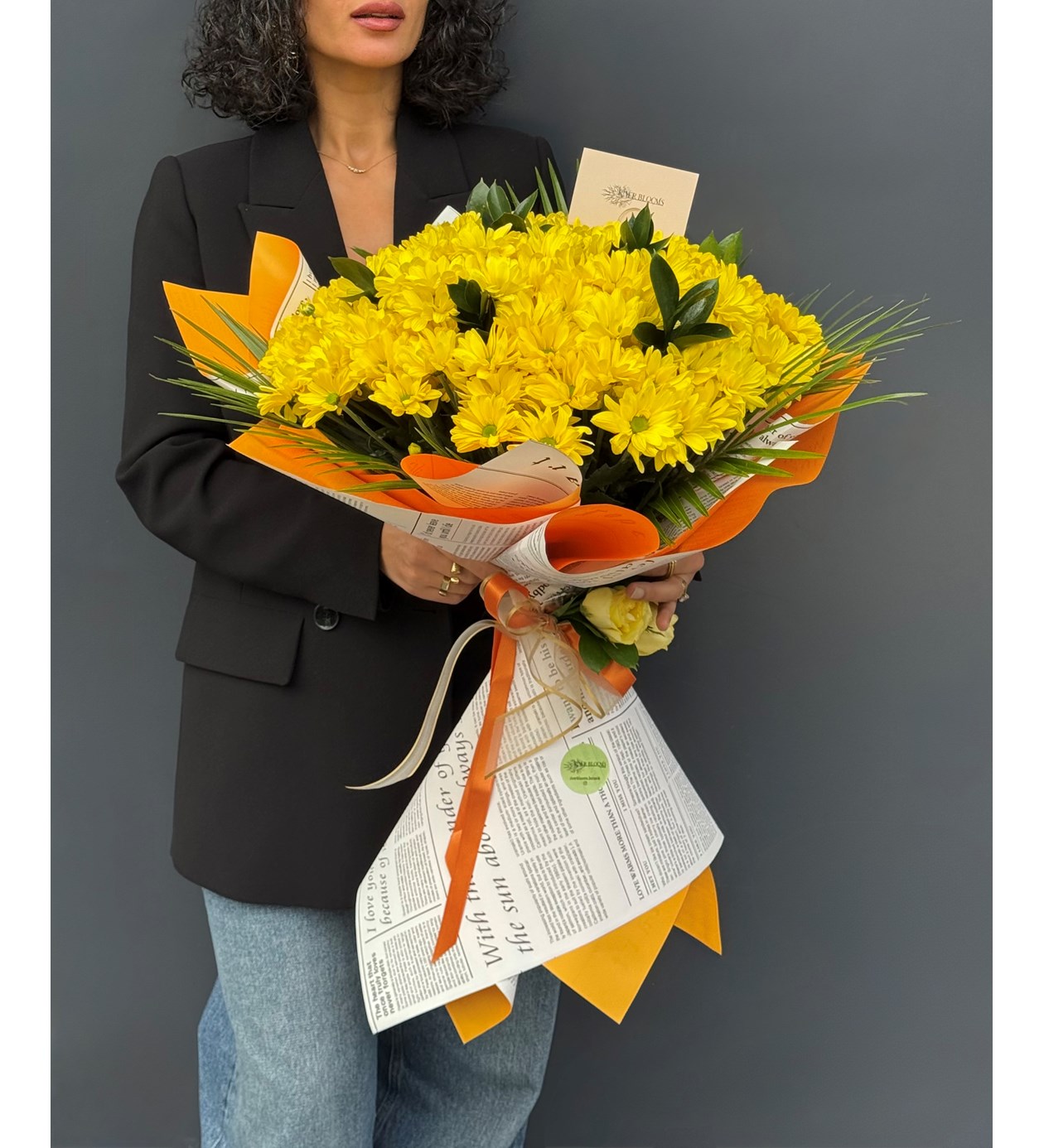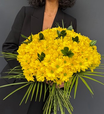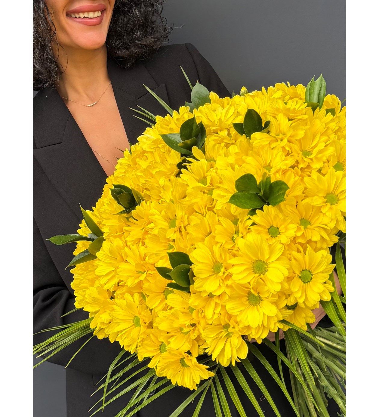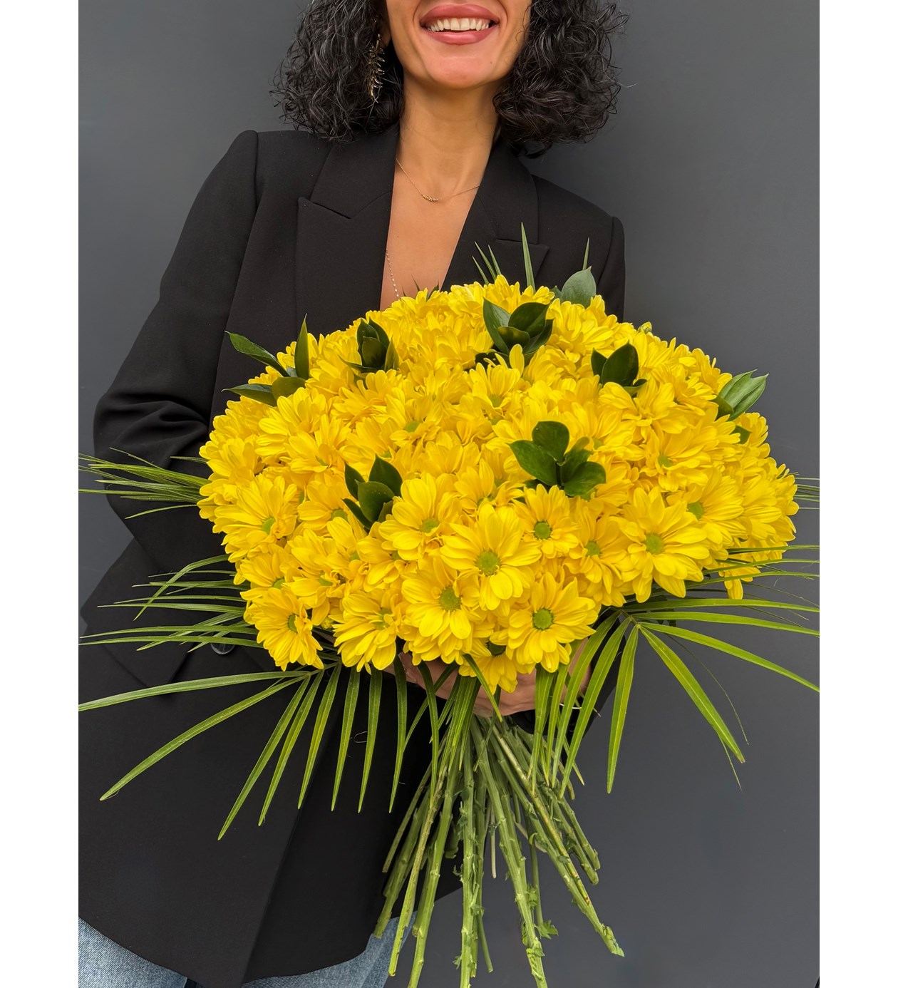Kucak dolusu sarı papatya buketi ile sevdiklerininizin gününü özel kılabilirsiniz.