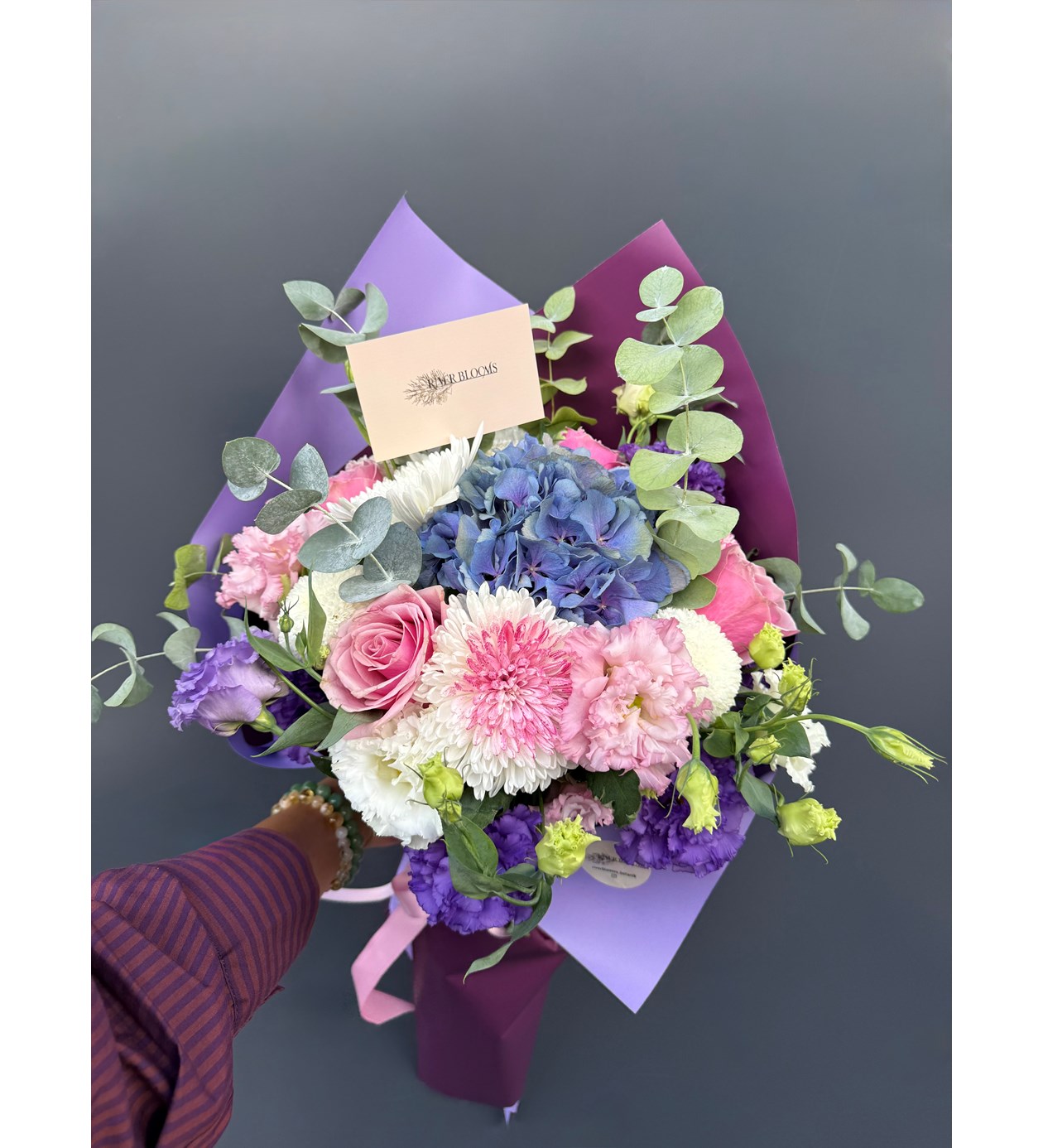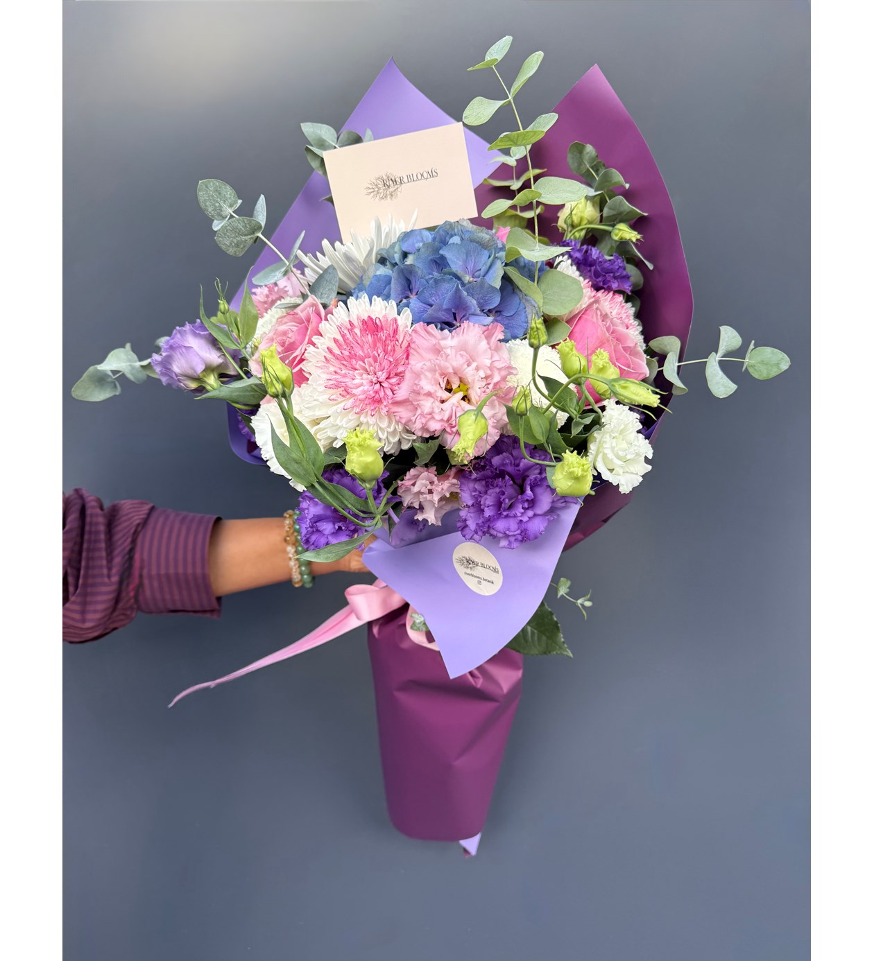 Ortanca, anastasia, lisiantus, gül ve okaliptus ile hazırladığım buketimizi sizde sevdiklerinizin yüzünü gülümsetmek için tercih edebilirsiniz