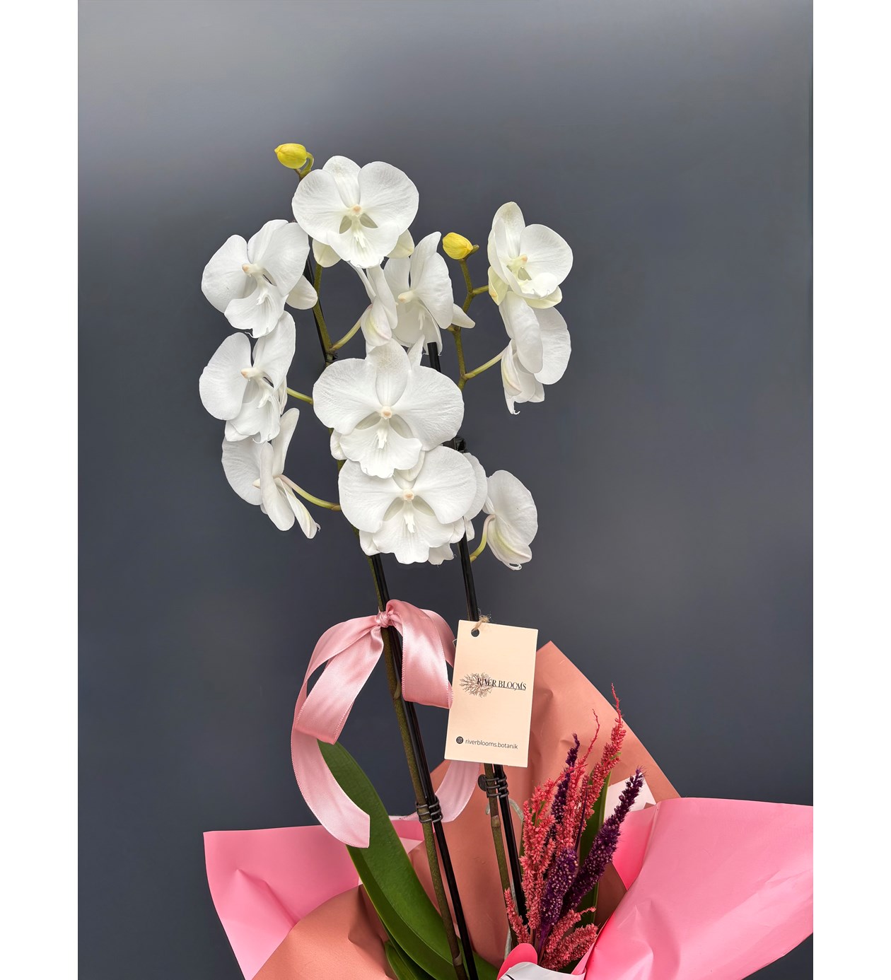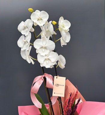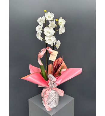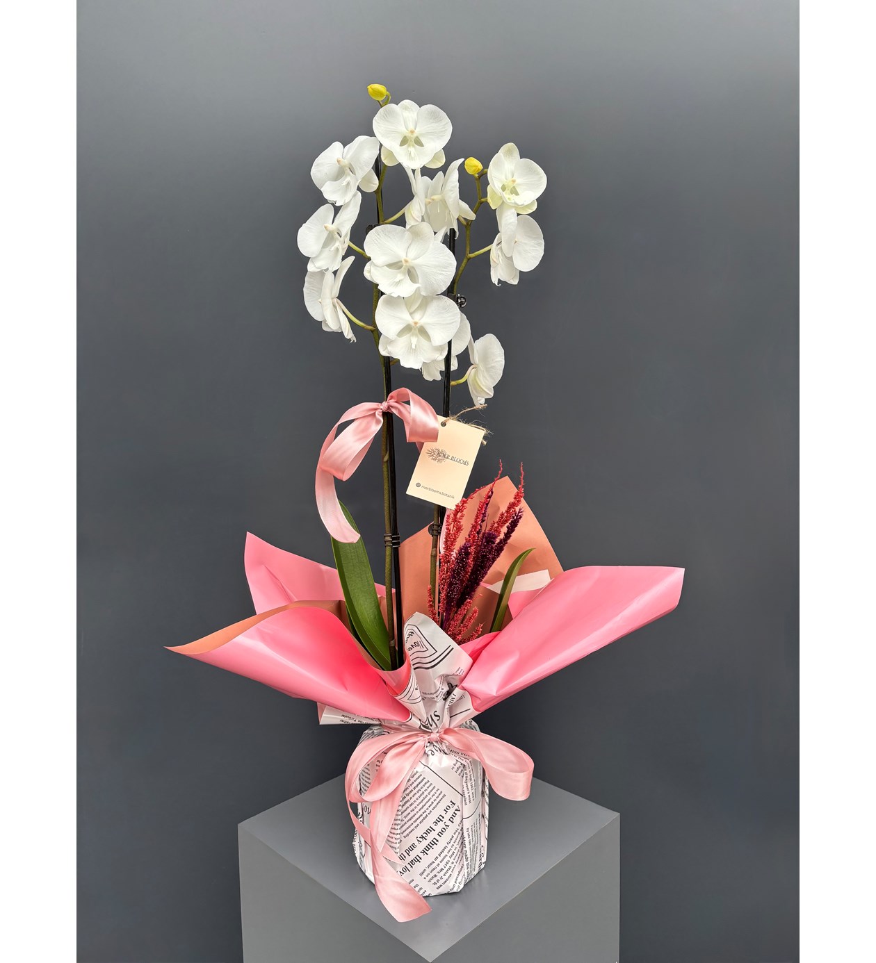 Çift dallı Orkide, designers ekibimizin özenle süslediği ve içerisinde Beyaz Orkide'den oluşan bir üründür.